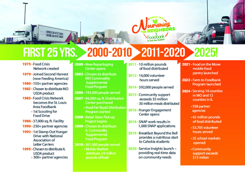 For 50 years, the St. Louis Area Foodbank has been a lifeline for our neighbors, providing vital nourishment and resources. As we look to the future, your support is more critical than ever. Help us build a resilient Foodbank, ensuring communities across Missouri and Illinois have access to food security for generations to come.