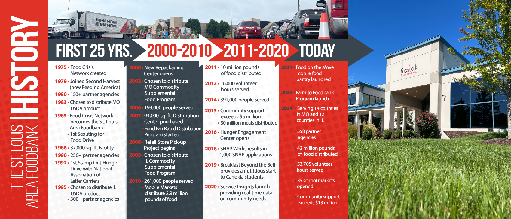 Click the button below to view the timeline of all we’ve been able to do together to make a difference in the lives of our neighbors throughout the bi-state area.
